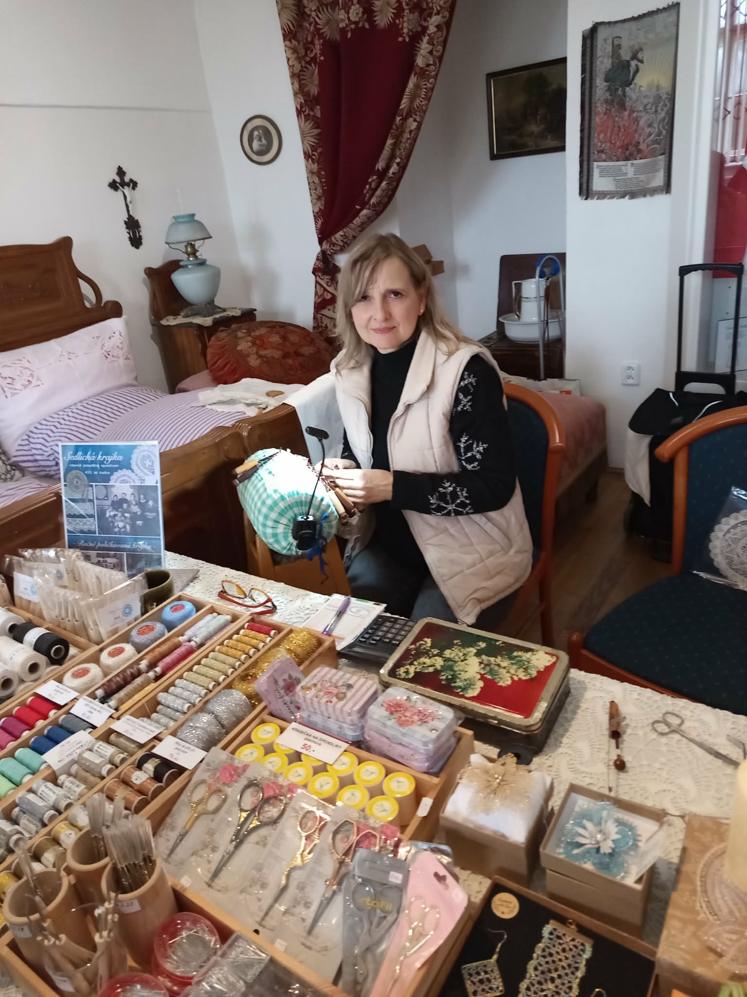 Najdete nás zde s naším krajkovým sortimentem v přízemí zámku v prostorách zámecké ložnice. Budeme mít pro Vás připravený zajímavý vánoční sortiment našich paličkovaných kraječek a nebudou chybět ani pomůcky pro krajkářky. Mimo jiné tu budou další rukodělná tradiční řemesla a občerstvení. Navštívit tuto akci můžete od 9.00 - 15.30 hodin. Více informací najdete na: www.muzeum-blovice.cz