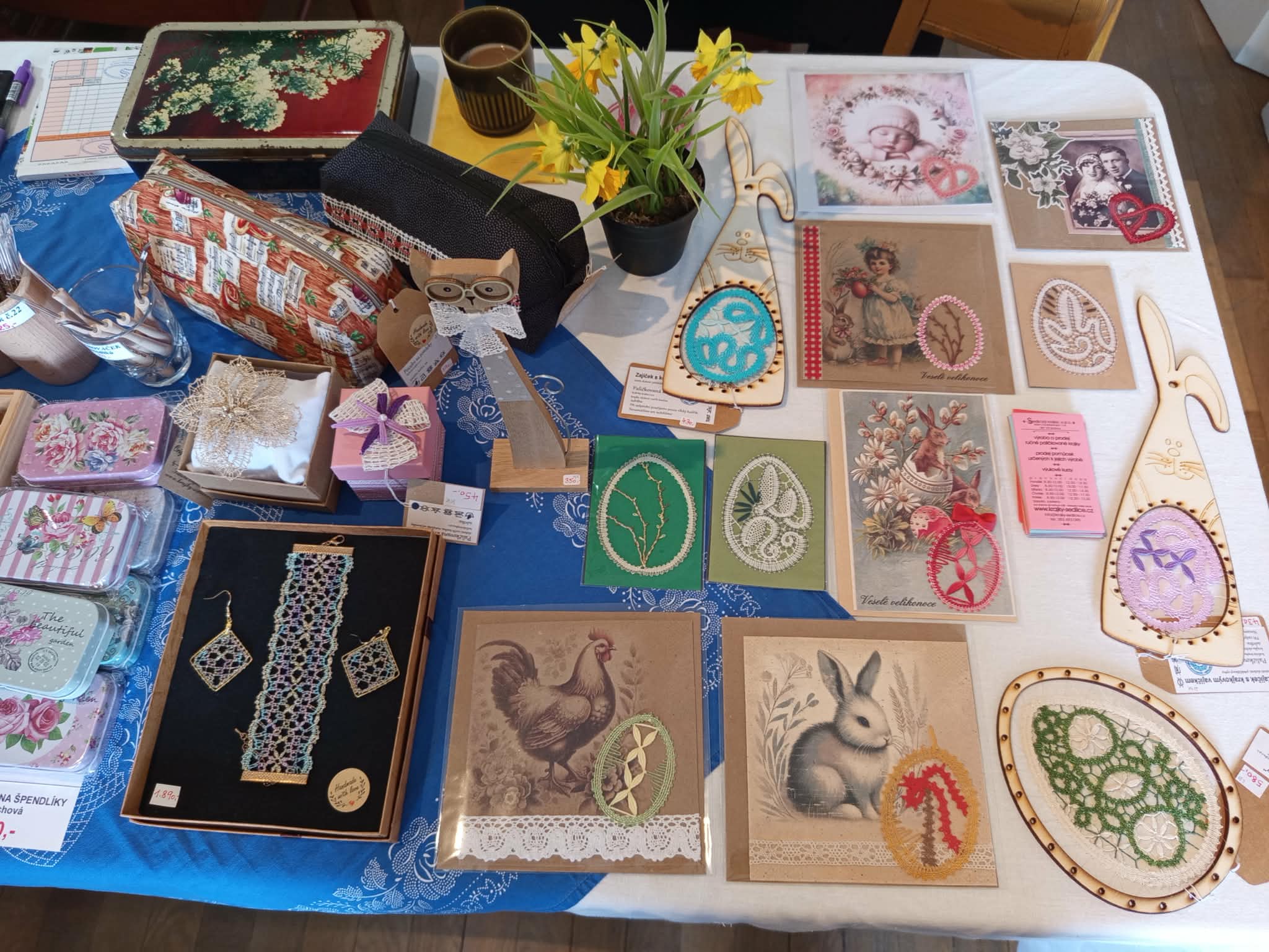Součástí jarního jarmarku bude i náš "stánek" s našimi paličkovanými výrobky a pomůckami pro krajkářky. Nabídneme Vám jak oděvní doplňky (náramky, náušnice, brože), tak i doplňky bytové jako jsou obrázky, prostírky, ubrusy.....a mnoho dalšího. Najdete nás na stejném místě jako v letech minulých a to v přízemí zámku, v prostorách "ložnice".