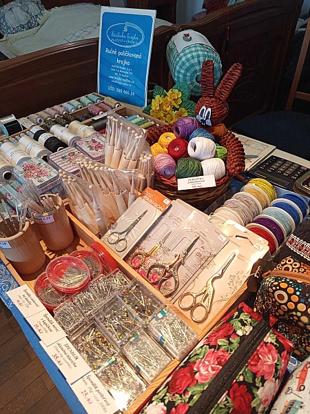 Naše paličkované výrobky a pomůcky pro krajkářky jste našli již tradičně v přízemí zámku, v prostorách "ložnice".