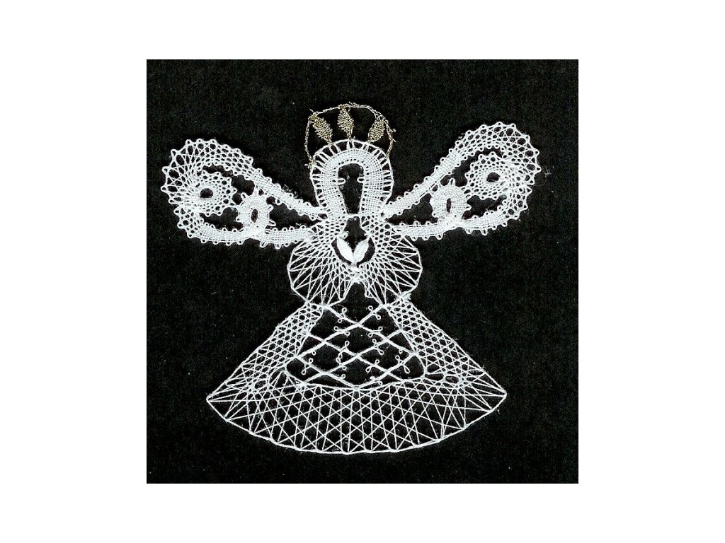 Velikost i s rámem: 11x11cm, velikost krajky: 7,5x7,5cm, krajka: bílo/zlatá (viz.foto), podklad: černý. Cena včetně rámečku (dle aktuální nabídky).