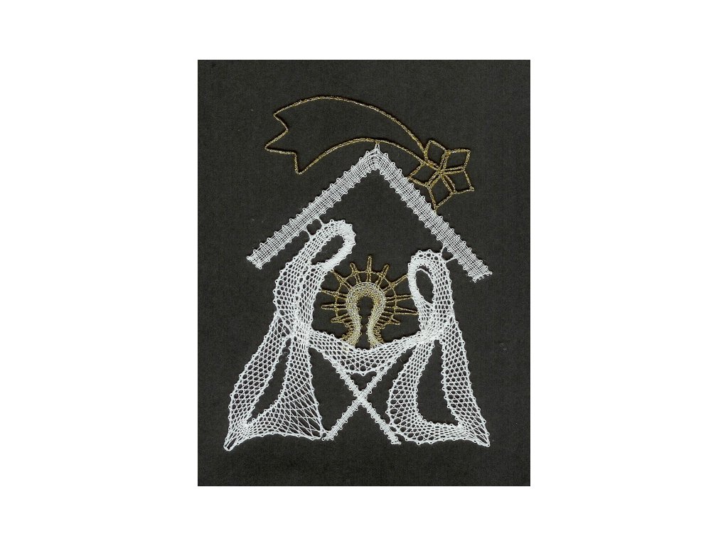 Velikost i s rámem: 18 x 23 cm, velikost krajky: 10 x 14 cm, krajka: bílá se zlatým efektem (viz.foto), podklad: černý. Cena včetně rámečku (dle aktuální nabídky).
