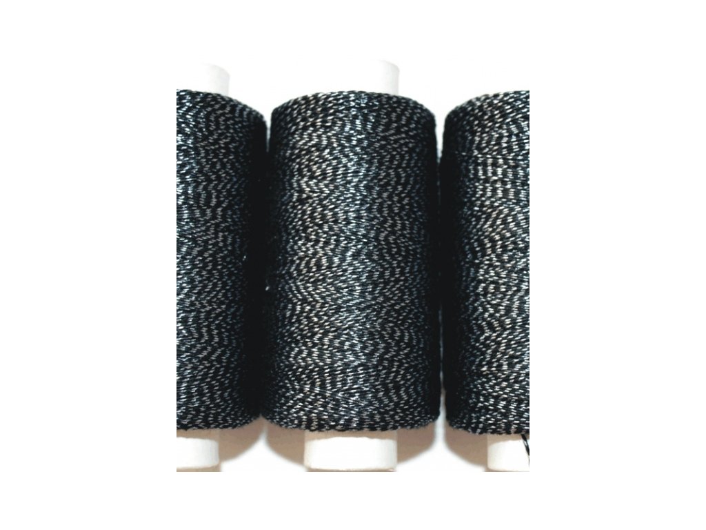 Nitě BAVLNĚNÉ-METALICKÉ, odstín: černá bavlněná niť se stříbrným proužkem, jemnost: 24, návin: 200m, složení: 90% bavlna, 10% pokovené vlákno, ČESKÝ VÝROBEK.