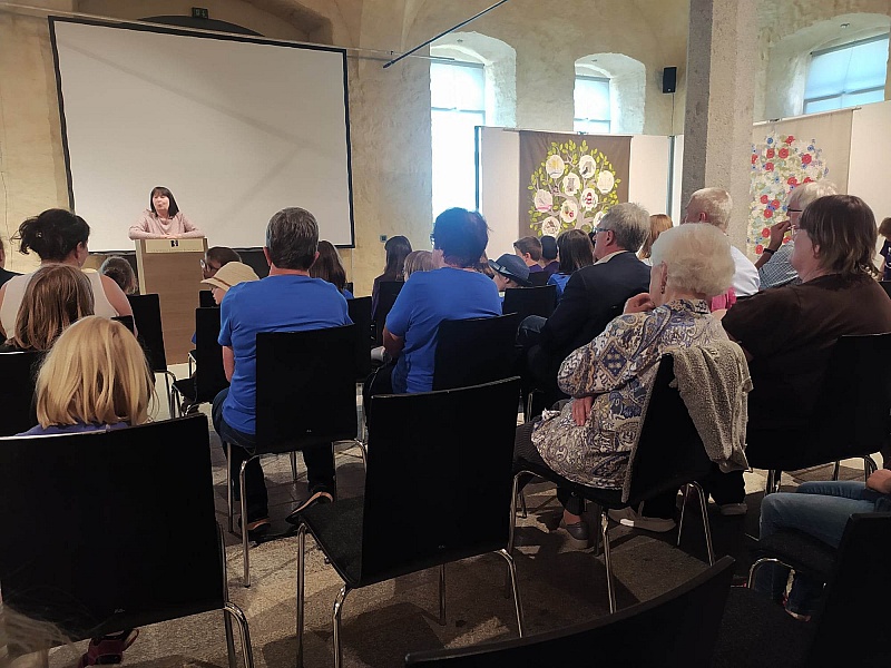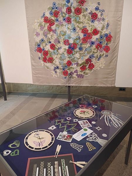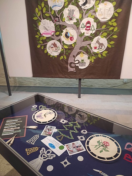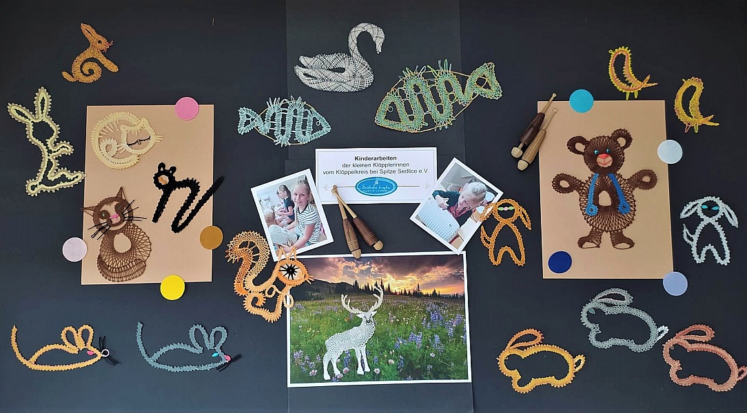 PUTOVNÍ VÝSTAVA paličkovaných výrobků MALÝCH krajkářek z kroužku paličkování při Sedlické krajce, o.p.s. a z kroužku bavorských partnerů z Tiefenbachu a Schönsee (Horní Falc). Součástí výstavy byla i společná prostorová krajka (2x2m) LOUKA a STROM POHÁDEK a představili jsme přítomným nově připravovaný projekt HRADNÍ STRAŠIDLA.