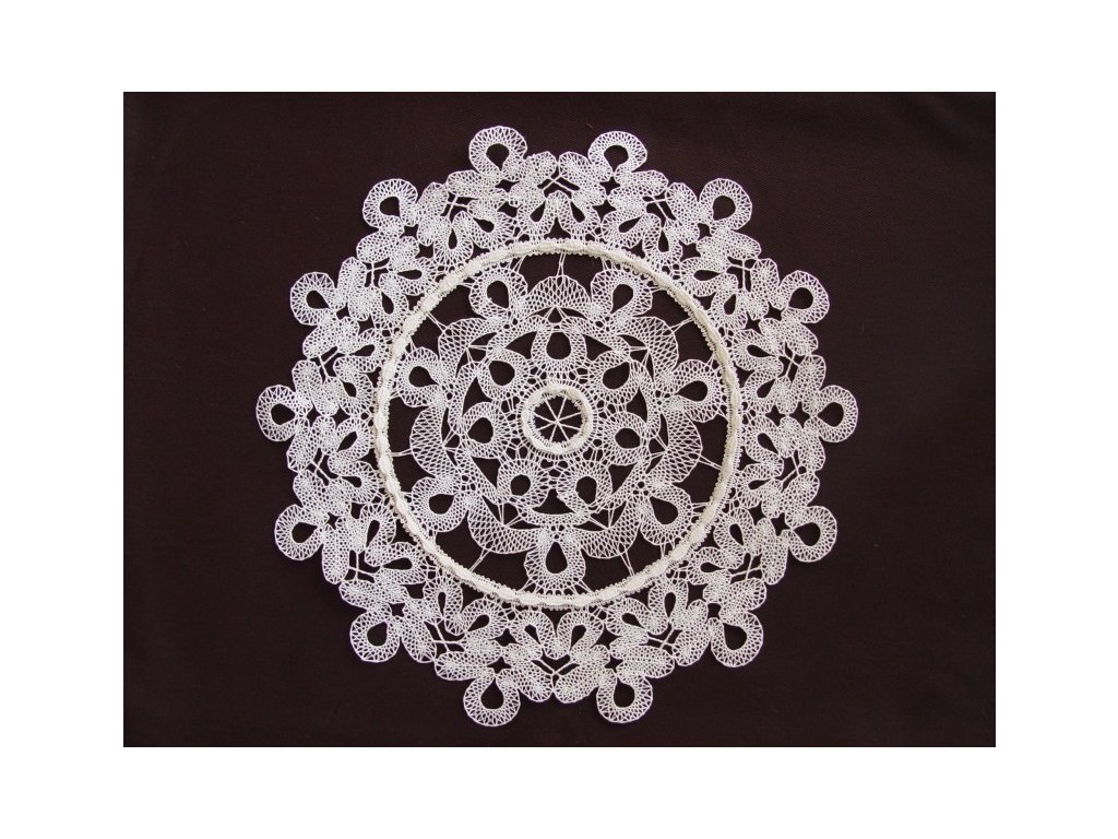 Prostírání o velikosti: 32 cm, materiál: 100% bavlna, barva: bílá (viz.foto). Na objednávku vyrobíme krajku ve vámi zvolené barvě.
