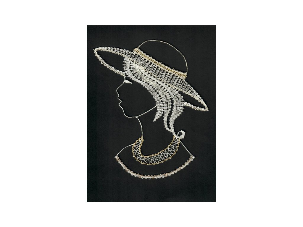 Velikost i s rámem: 19 x 25 cm, velikost krajky: 13 x 17 cm, krajka: bílo/zlatá (viz.foto), podklad: černý. Cena včetně rámečku (dle aktuální nabídky).