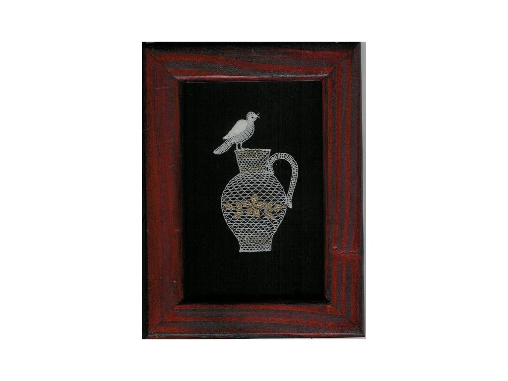 Velikost: 19 x 13,5 cm, krajka: bílo/zlatá, podklad: černý. Cena včetně rámečku (dle aktuální nabídky).