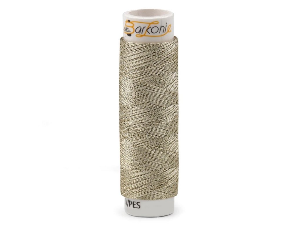 Metalická nit Karolína 5 je efektní vyšívací příze vhodná na výrobu jemných krajek. Je podobná niti Titano, která se již nevyrábí. Návin 25m, jemnost 38/5, složení CV/PES.