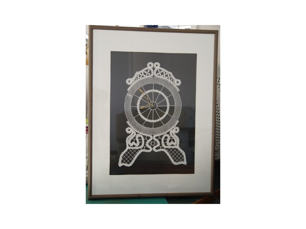 Velikost s rámem: 35 x 45 cm, velikost krajky: 14 x 22 cm, krajka: bílo/zlatá, podklad: černý s paspartou. Cena včetně rámečku (dle aktuální nabídky).