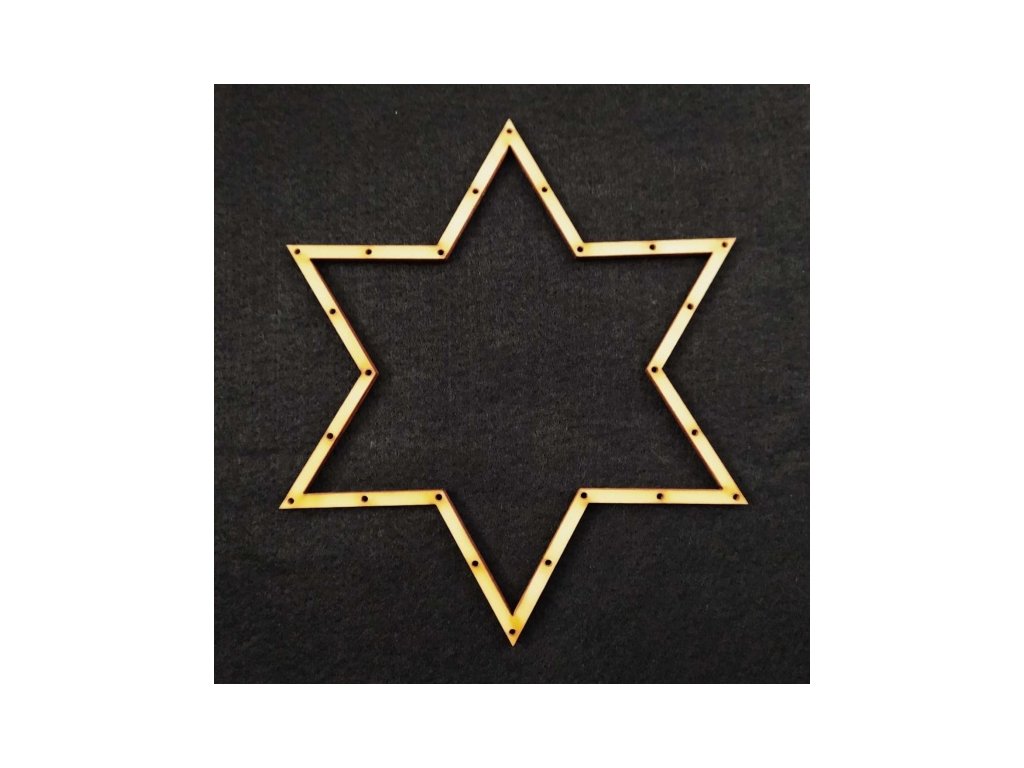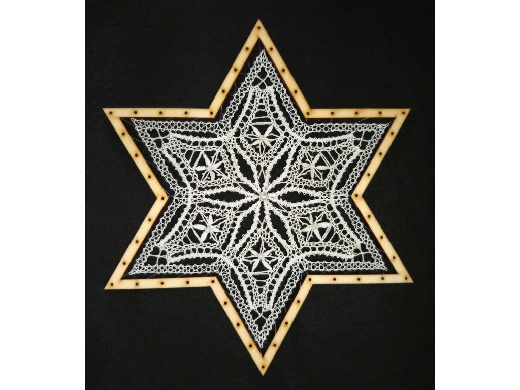 Překližkový výřez určený pro dekorování paličkovanou krajkou. Vhodný pro zavěšení na dveře, do okna nebo do prostoru. Šesticípou hvězdu (velkou) nabízíme ve dvou velikostech: 21 cm a 24 cm. Pro uchycení krajky, doporučujeme použít jemný vlasec nebo silonové vlákno - Nylon. Barva: přírodní (viz foto). Velikost Vámi vybrané velikosti napište do objednávkového formuláře (do zprávy).