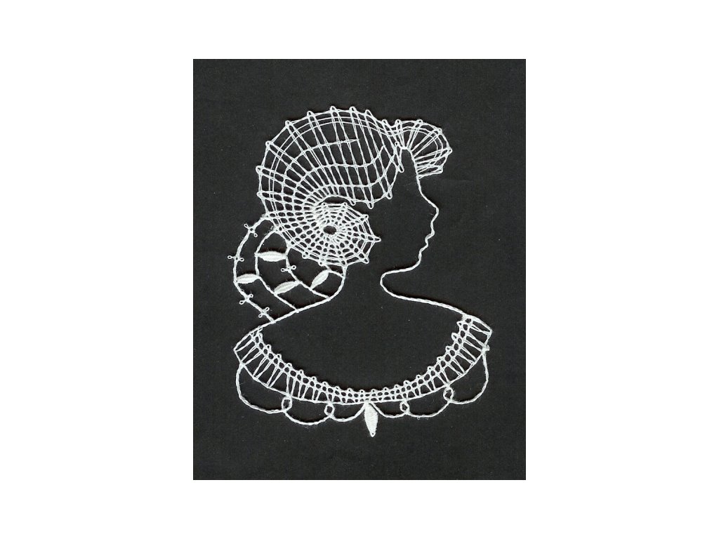 Velikost i s rámem: 11 x 13 cm, velikost krajky: 7 x 9 cm, krajka: bílá, (viz.foto), podklad: černý. Cena včetně rámečku (dle aktuální nabídky).