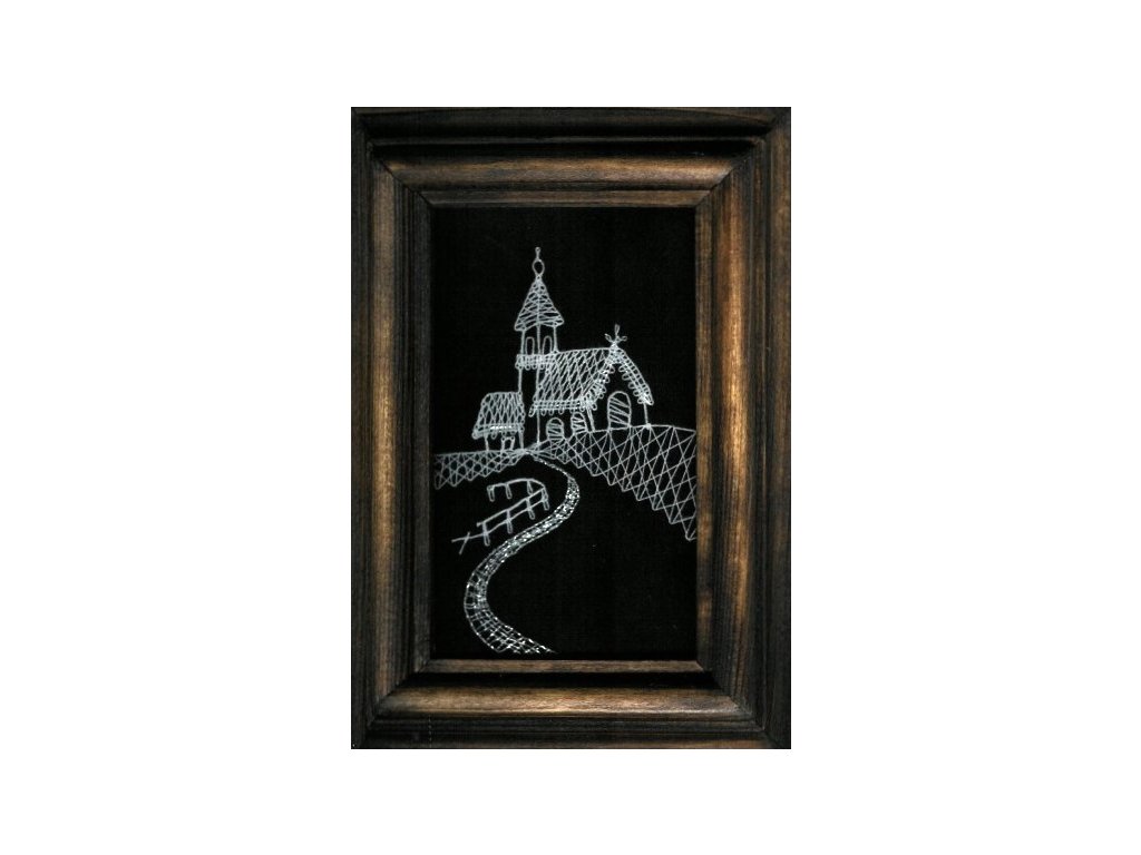 Velikost: 13 x 17 cm, krajka: bílo-stříbrná (viz.foto), podklad: černý. Cena včetně rámečku (dle aktuální nabídky).