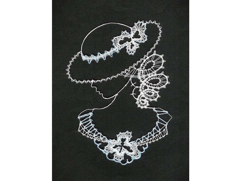 velikost i s rámem: 17,5 x 22,5 cm, krajka: bílo/modrá (viz.foto), podklad: černý. Cena včetně rámečku (dle aktuální nabídky).