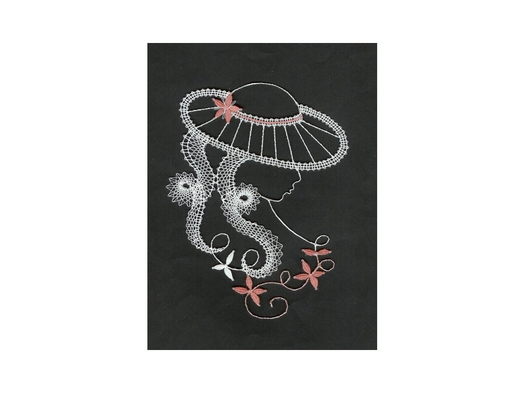 Velikost i s rámem: 16,5 x 21,5 cm, krajka: bílo/růžová (viz.foto), podklad: černý. Cena včetně rámečku (dle aktuální nabídky).