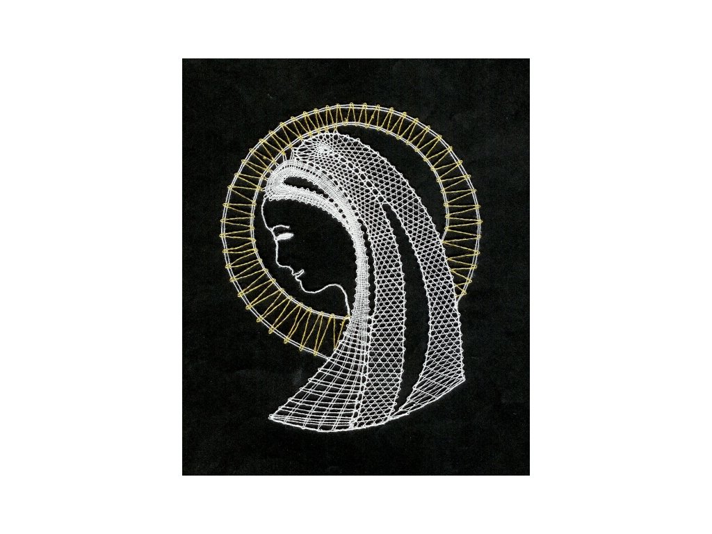 Velikost i s rámem: 22 x 28cm, velikost krajky: 14 x17cm, barevné provedení: bílo/zlaté (viz.foto), podklad: černý. Cena včetně rámečku (dle aktuální nabídky).