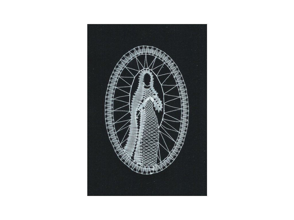 Velikost i s rámem: 16 x 21 cm, velikost krajka: 14 x 9 cm. krajka: bílá (viz.foto), podklad: černý. Cena včetně rámečku (dle aktuální nabídky).