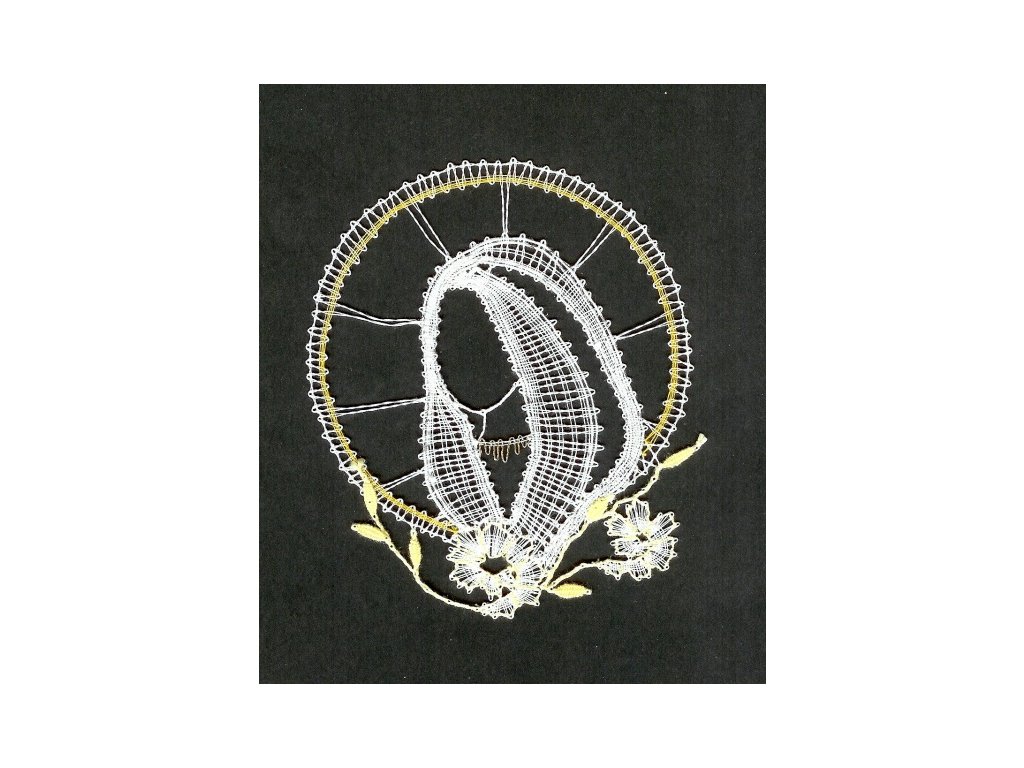 Velikost i s rámem: 15 x 20 cm, velikost krajky: 9 x 10 cm, krajka: bílo/zlatá (viz.foto), podklad: černý. Cena včetně rámečku (dle aktuální nabídky).