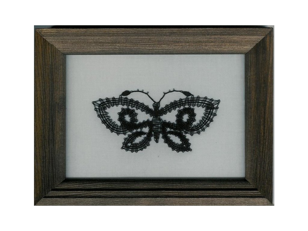 Velikost i s rámem: 15 x 20 cm, velikost krajky: 7 x 4 cm, krajka: černá (viz.foto), podklad: bílý / krémový. Cena včetně rámečku (dle aktuální nabídky). Do poznámky můžete uvést barvu motýla - vyrobíme na přání, dle Vašeho požadavku.