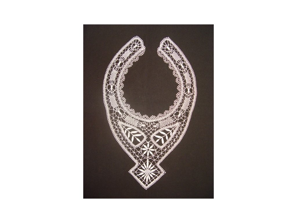 Zhotoveno podle historického vzoru, velikost krajky: 21 x 36 cm, barva: ecry nebo bílá. Zapínání: krejčovský háček. Vyrobíme na zakázku - barva variabilní.