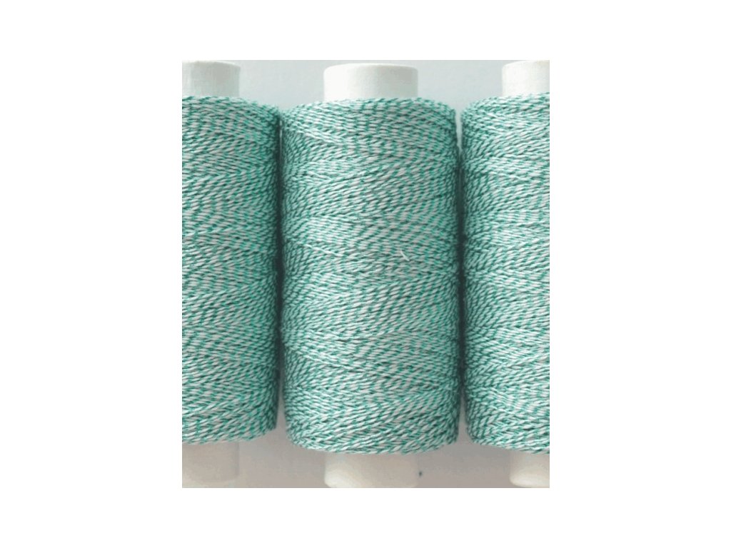 Nitě bavlněné/metalické "Andrea" bílá č.62 - zelený metalický proužek