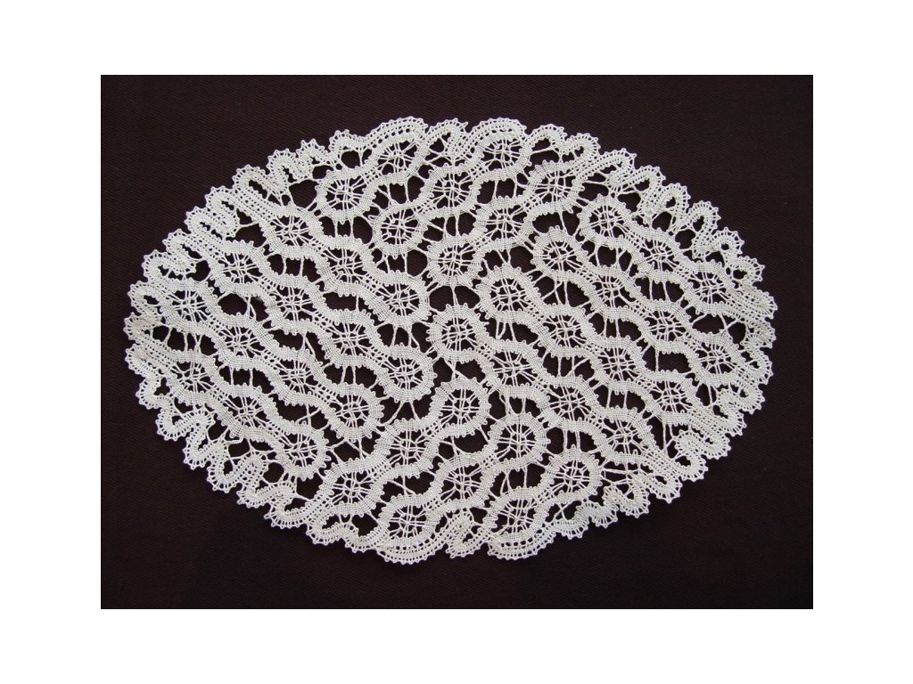Oválné prostírání o velikosti: 20 x 30 cm, materiál: 100% bavlna, barva: smetanová (viz.foto). Na objednávku vyrobíme krajku ve vámi zvolené barvě.