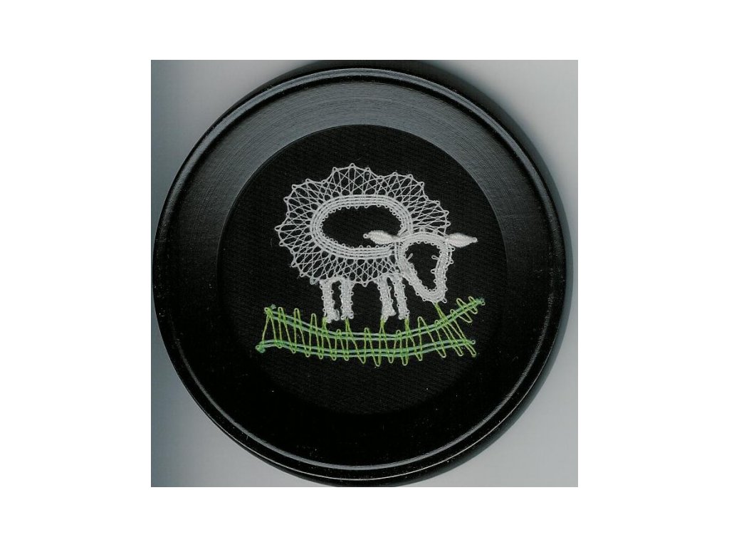 Velikost i s rámem: 12 cm , velikost krajky: 7 x 7 cm, krajka: bílo / zelená (viz.foto), podklad: černý. Cena včetně rámečku (dle aktuální nabídky).