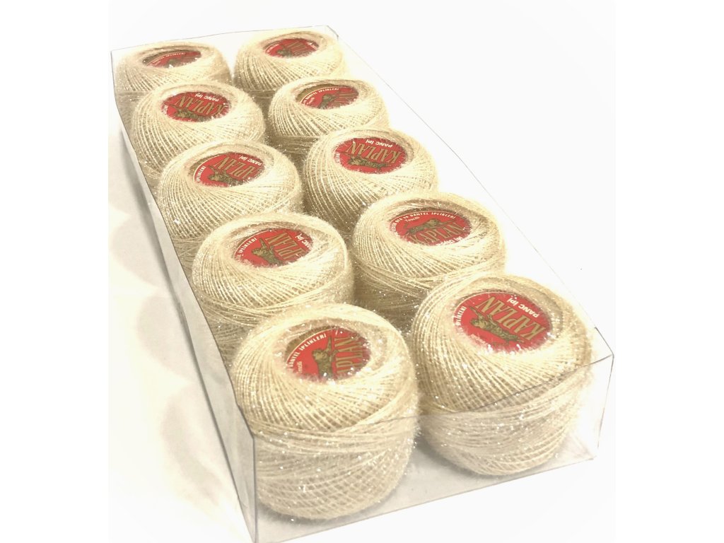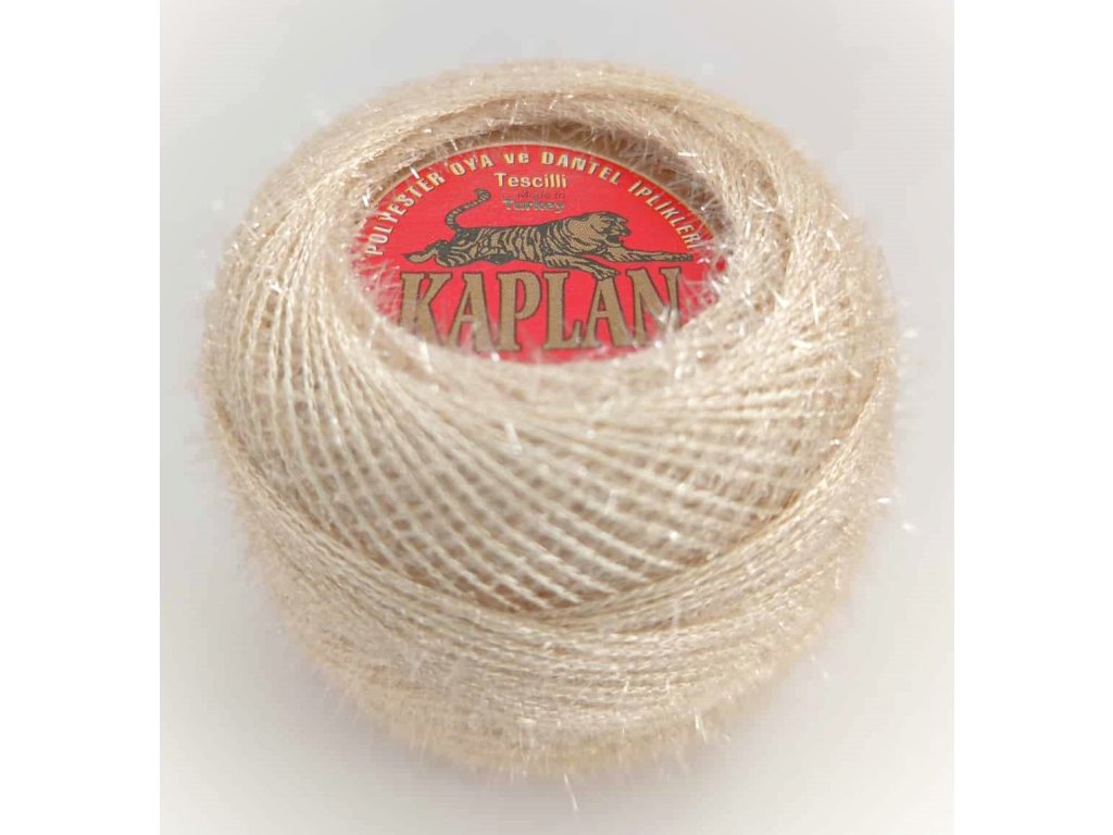 Příze KAPLAN je "střapatá" s krátkým chloupkem a vysokým efektním leskem. Hmotnost: 20g, Složení: polyester, kovové vlákno.
