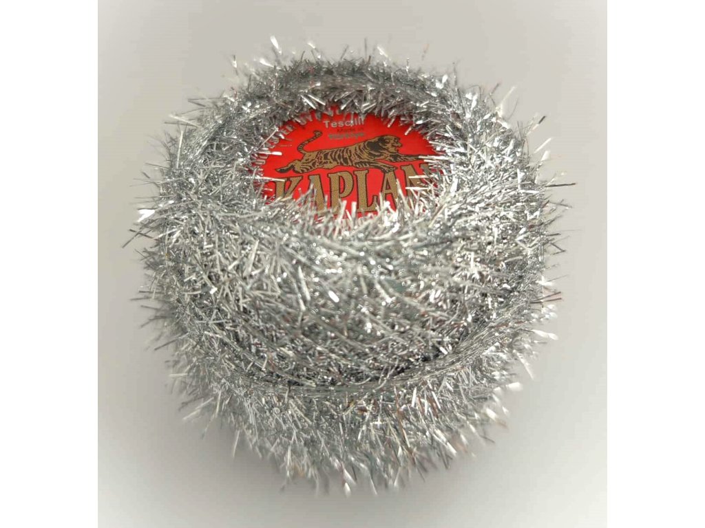 Příze KAPLAN je "střapatá" s krátkým chloupkem a vysokým efektním leskem. Hmotnost: 20g, Složení: polyester, kovové vlákno.