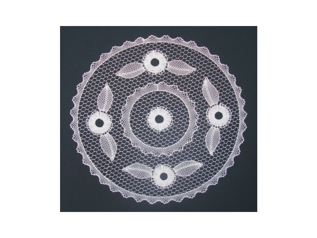 Prostírání o velikosti: 33 cm, materiál: 100% bavlna, barva: bílá (viz.foto). Na objednávku vyrobíme krajku ve vámi zvolené barvě.