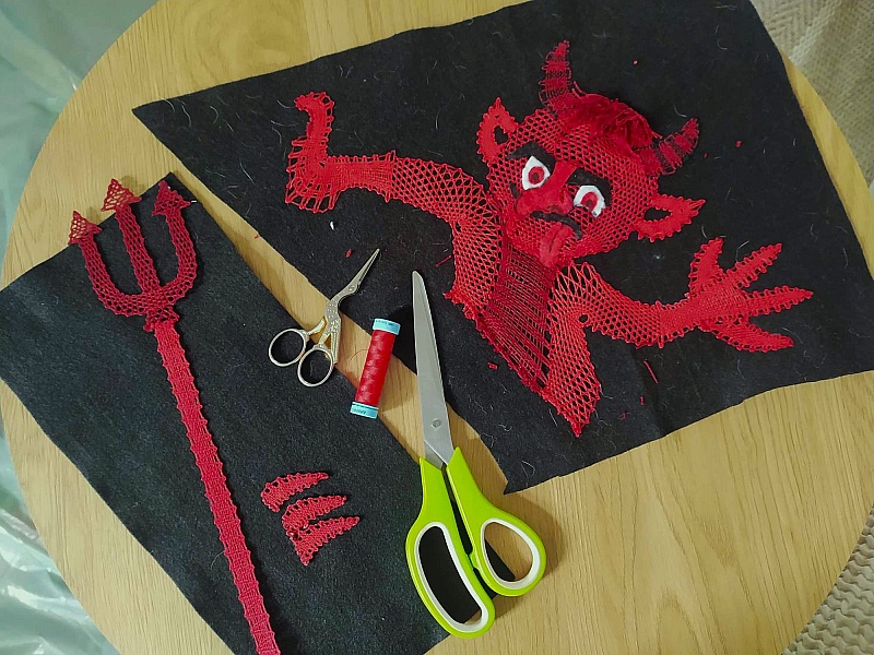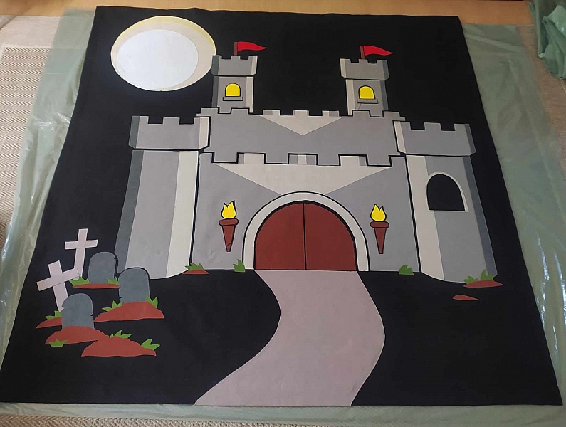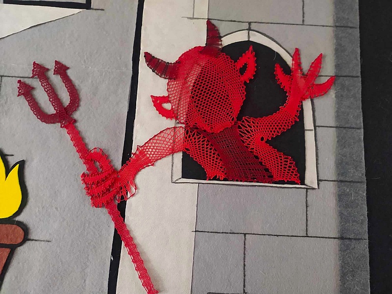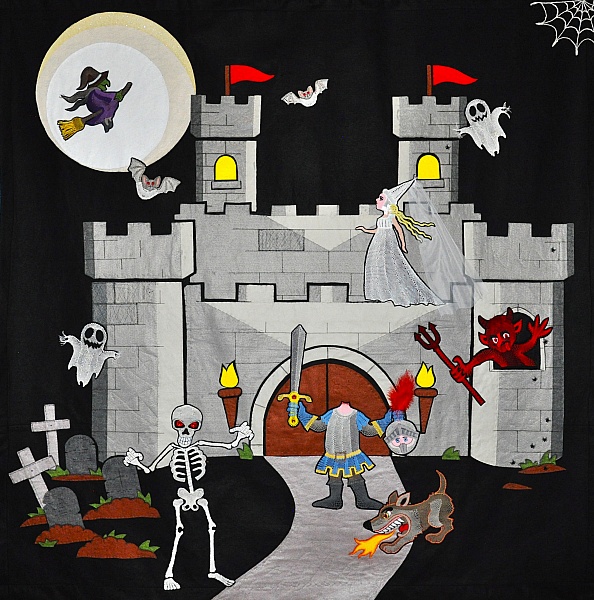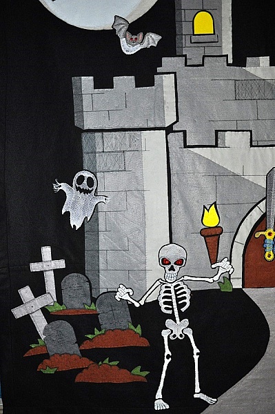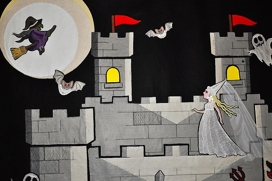 Výsledné dílo má rozměry 2 x 2 m a představuje tajuplný hrad, kde se to jenom hemží strašidly. Své zastoupení tu má paličkovaný hrozivý kostlivec, ohnivý pes, bezhlavý rytíř, ale také čarodějnice na koštěti, čert, netopýři, duchové a bílá paní.