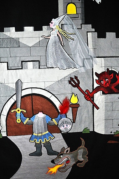 Prostorová krajka s pohádkovou tématikou, kterou připravila a zrealizovala Sedlická krajka,o.p.s.