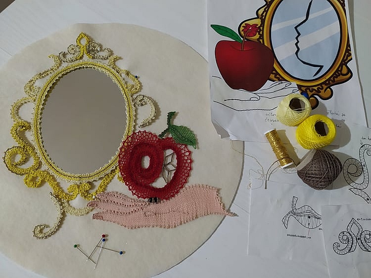 Prostorová krajka s pohádkovou tématikou, kterou připravila a zrealizovala Sedlická krajka,o.p.s.