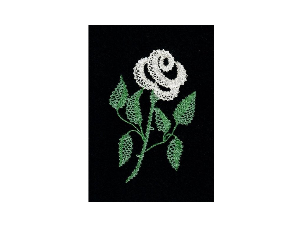 Velikost i s rámem: 19 x 24 cm, velikost krajky: 8,5 x 13 cm, krajka: bílo/zelená, podklad: černý. Cena včetně rámečku (dle aktuální nabídky).