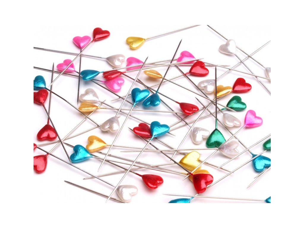 Špendlíky mají dekorativní perleťovou (plastovou) hlavičku ve tvaru srdíčka. Délka špendlíku 50mm, cena za 1ks.
