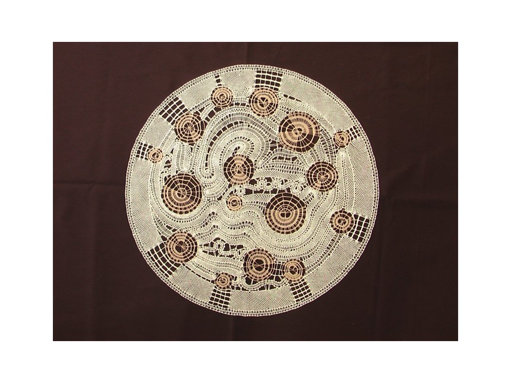 Moderní kulatý ubrus o velikosti: 54 cm, materiál: 100% len, barva: přírodní odstíny smetanové a kávové (viz.foto). Na objednávku vyrobíme krajku ve vámi zvolené barvě.