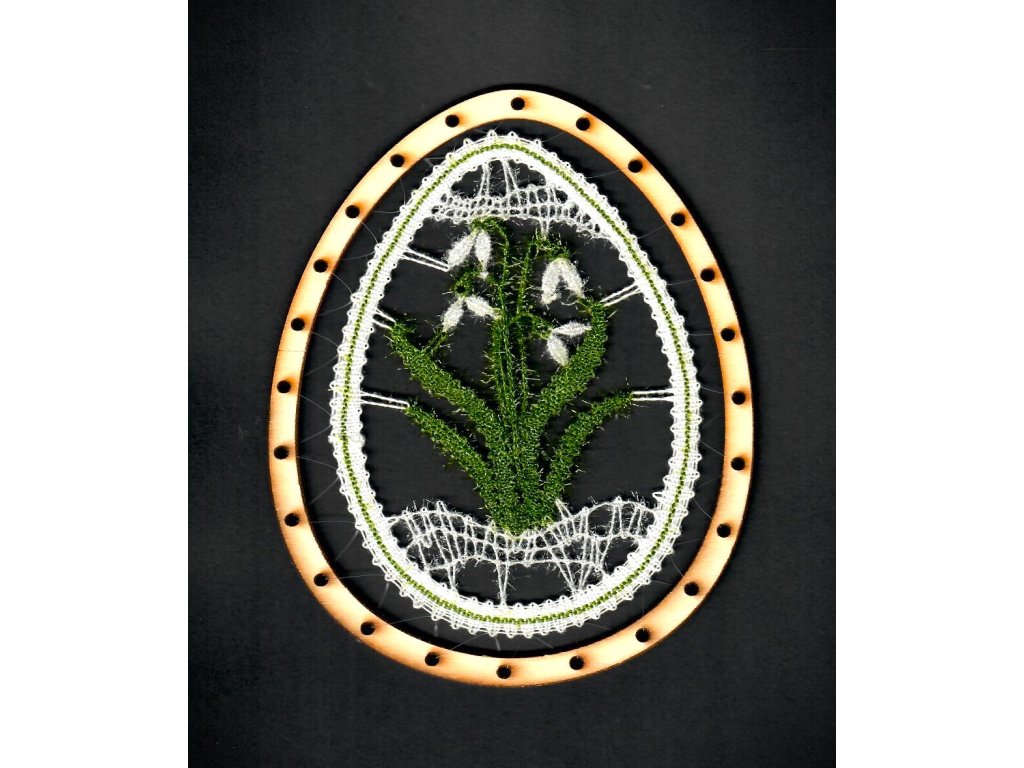 ZÁVĚS - velikost překližkového výřezu VAJÍČKO: 12,5 x 15,5 cm, krajka: bílo-zelená(viz.foto),  Krajka je k výřezu přišitá monofilovým vláknem. Velikonoční dekorace vhodná na zavěšení do prostoru.