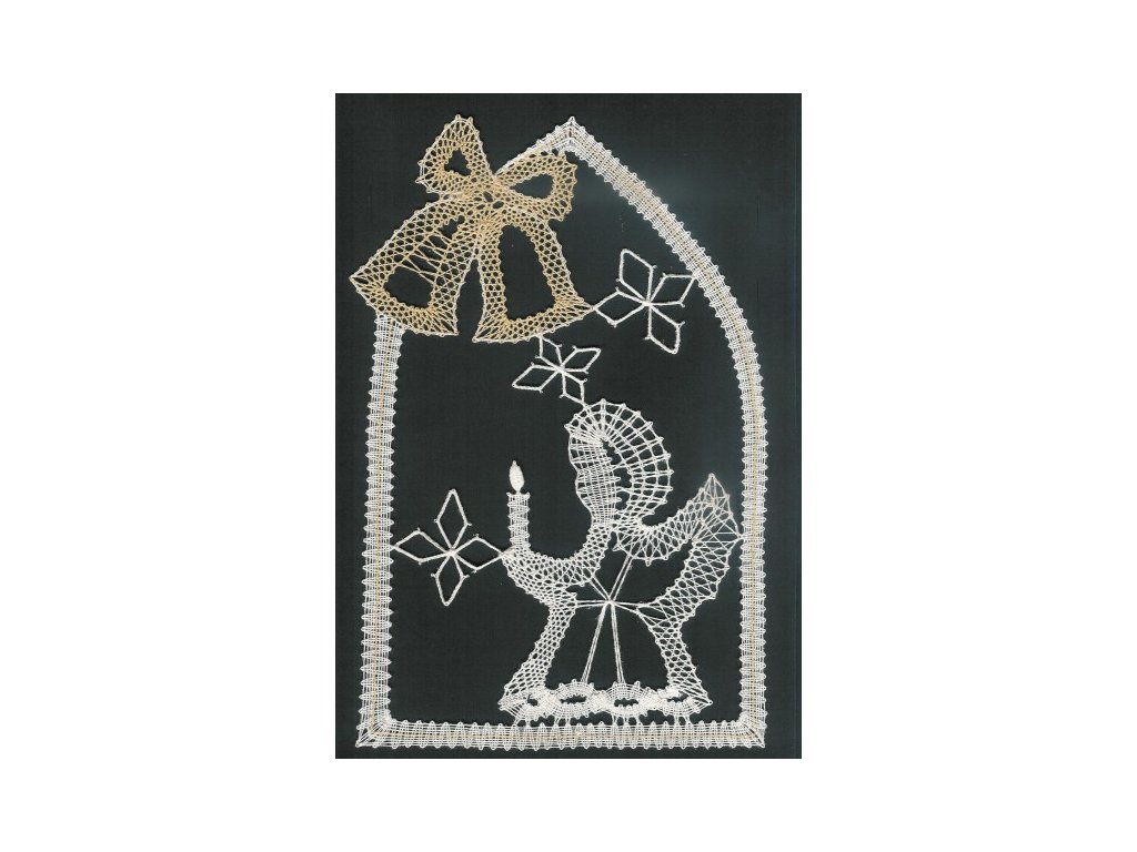 Vánoční dekorace, vhodné jako závěs do okna, velikost: 18 x 27 cm, krajka: bílo/zlatá (viz.foto).