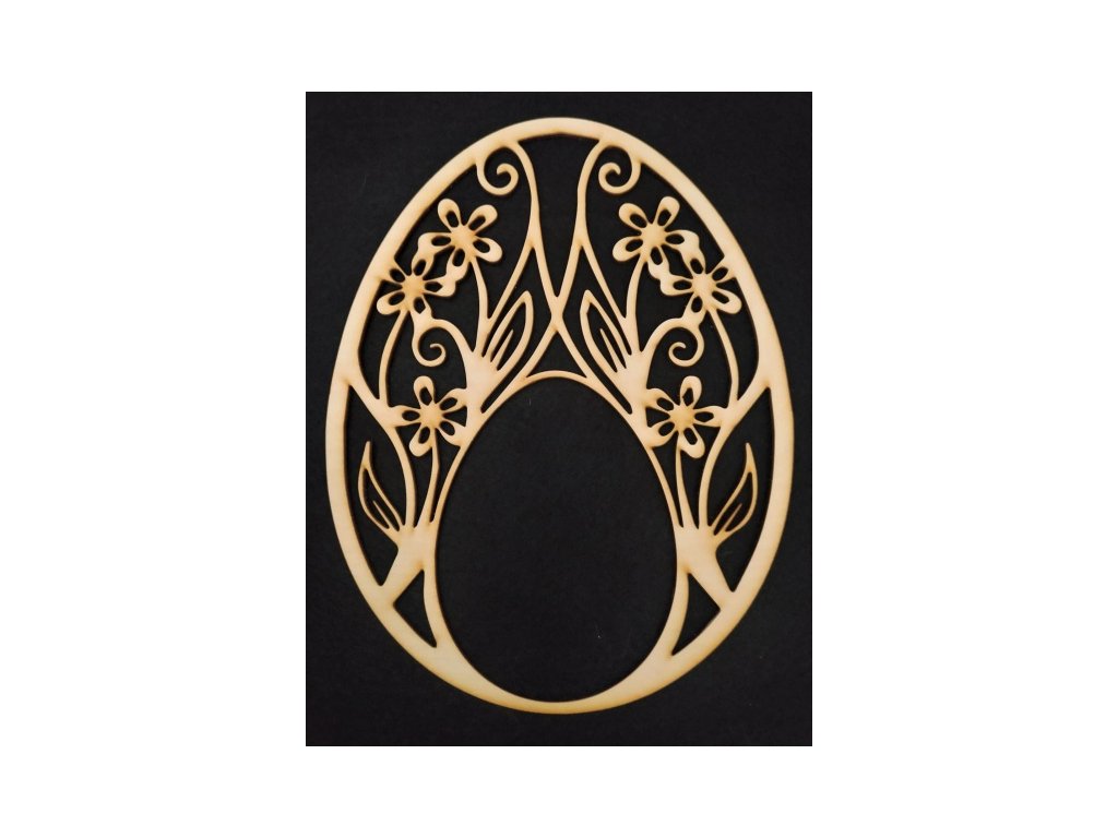 Překližkový výřez určený pro dekorování paličkovanou krajkou. Vhodný pro zavěšení na dveře nebo do okna. Velikost překližkového vajíčka: 27 x 21 cm, velikost vnitřního vajíčka (určeného pro paličkovanou krajku): 13,5 x 10,5 cm. Pro uchycení krajky, doporučujeme použít jemný vlasec nebo silonové vlákno - Nylon. Barva: přírodní (viz foto).