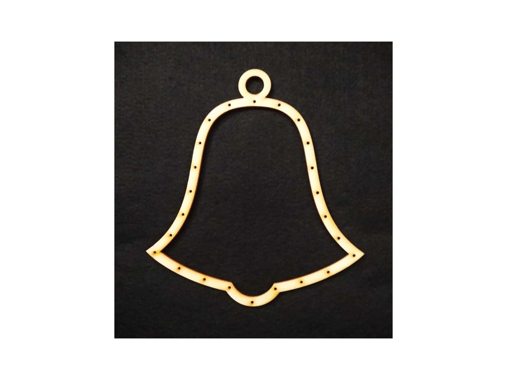 Překližkový výřez určený pro dekorování paličkovanou krajkou. Vhodný pro zavěšení na dveře, do okna nebo do prostoru. Celková velikost Zvonku:  14,5 x 16 cm. Vnitřní velikost (pro možnou krajku): 12,5 x 12,5 cm. Pro uchycení krajky, doporučujeme použít jemný vlasec nebo silonové vlákno - Nylon. Barva: přírodní (viz foto).